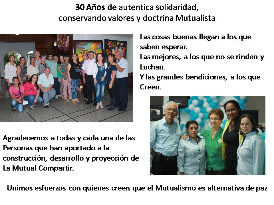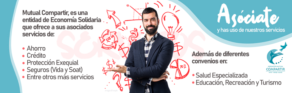 La Asociación Mutual Compartir es una empresa de economía solidaria que gestiona servicios de crédito, ahorro, auxilio exequial, educación y otros de bienestar y protección.